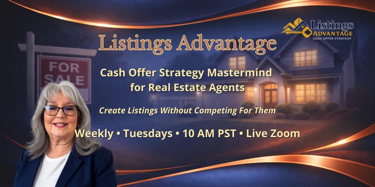 Join a weekly mastermind designed for agents who want to generate more listings using cash offer strategies, seller options, and stronger positioning.